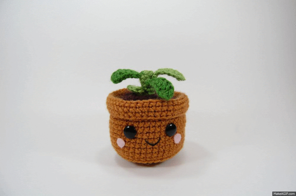 This sweet little potted plant is a fun and easy interactive toy to crochet! Pulling on the leaves makes him grow from a little seedling to a tall proud plant. With a new beginning each time he grows, he'll inspire smiles and giggles from children and adults alike!
