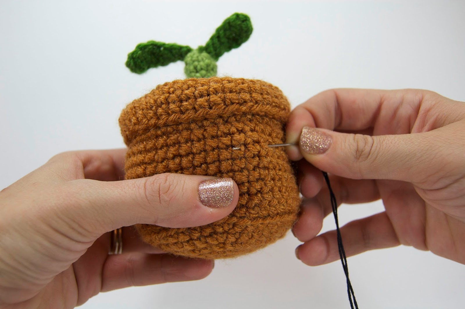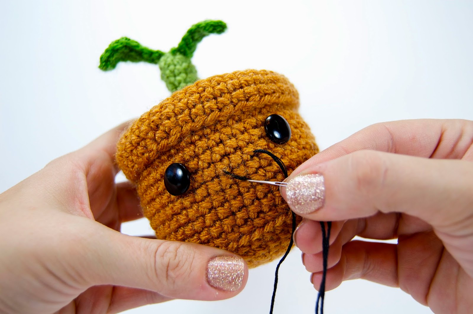 Fasten off, leaving a long tail for sewing. Fold down top edge of Pot along Rnd 19. Use tail to stitch down edge all the way around. Weave in ends.