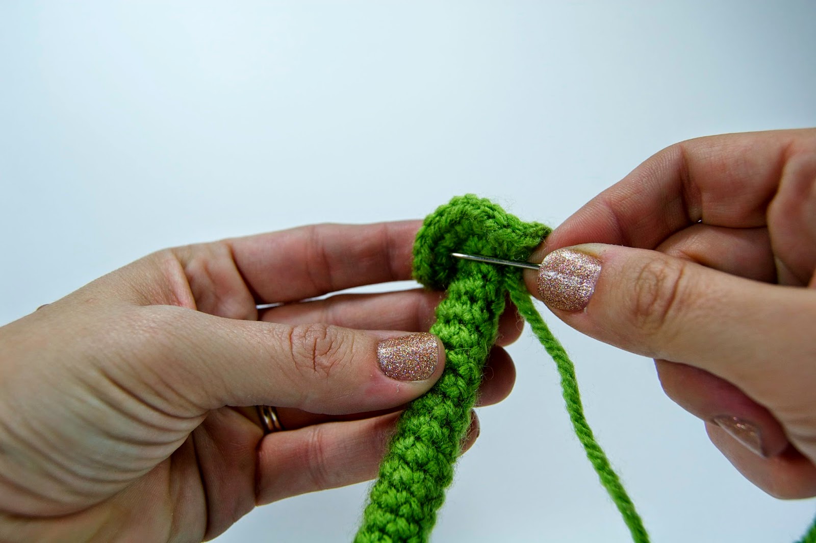 Rnds 17-18: Working into both loops, sc into each st (45 sts)